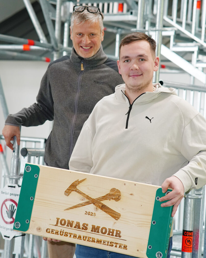 Mit 16 folgte nach der Schule zunächst die Ausbildung zum Maurer, an die er nahtlos die Meisterschule folgen ließ. Doch als frisch gebackener Maurer- und Stahlbetonbau-Meister war für den mittlerweile 19-Jährigen noch nicht Schluss. Die Schule für Gerüstbauermeister an der HWK für Oberfranken in Coburg war die erste, die eine bundesweit gültige Meisterprüfungsverordnung erlassen und 2001 die ersten angehenden Gerüstbauermeister geprüft hat. Und genau hier trat Jonas Mohr als frisch gebackener Maurermeister mit 19 Jahren an, um auch noch den Gerüstbauermeister zu machen.