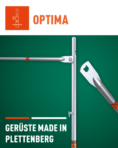 Zur praxisgerechten Abwehr potenzieller Absturzgefahren bei der Gerüstmontage hat MJ-Gerüst gemeinsam mit führenden Gerüstbauern das Stielsystem OPTIMA entwickelt.